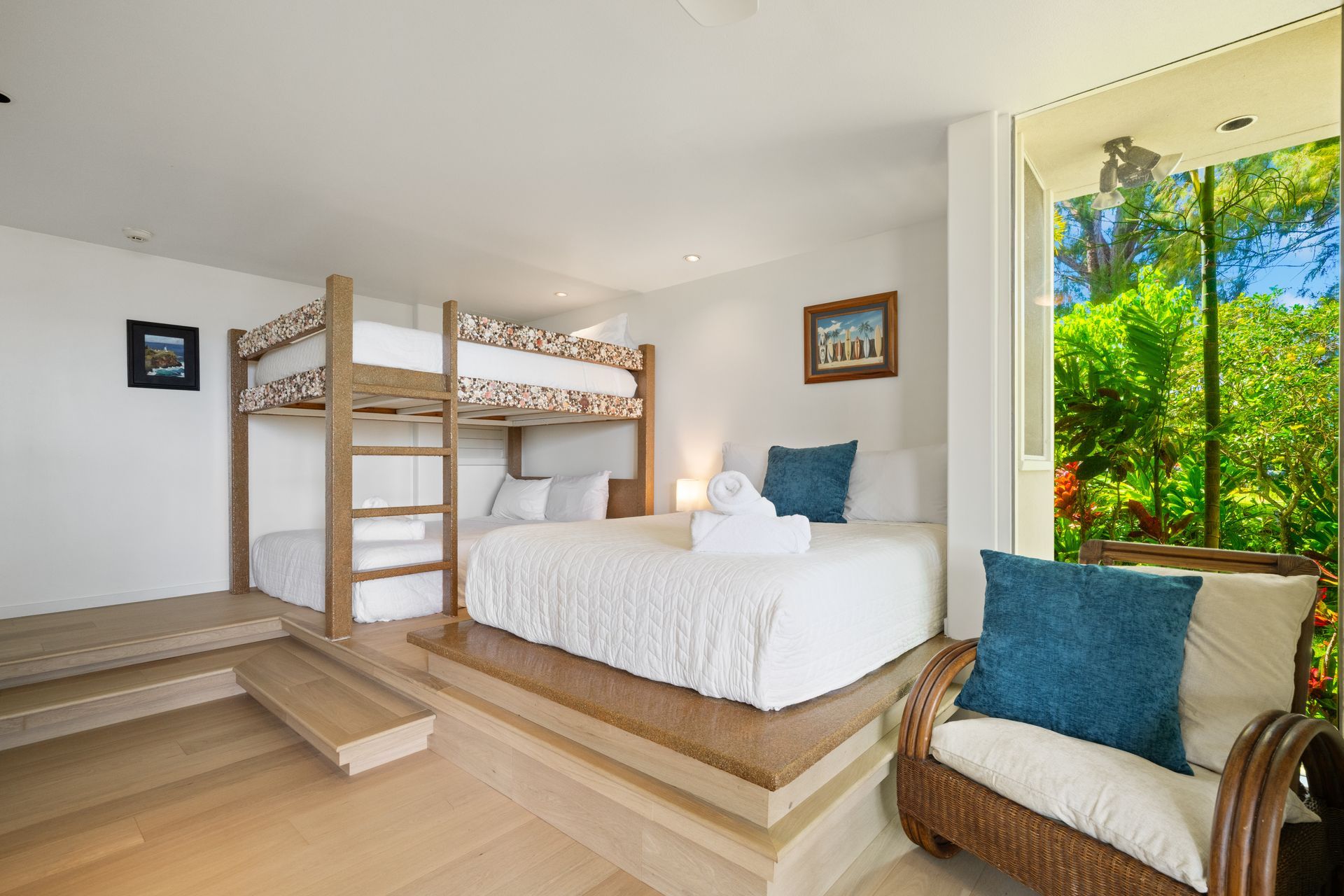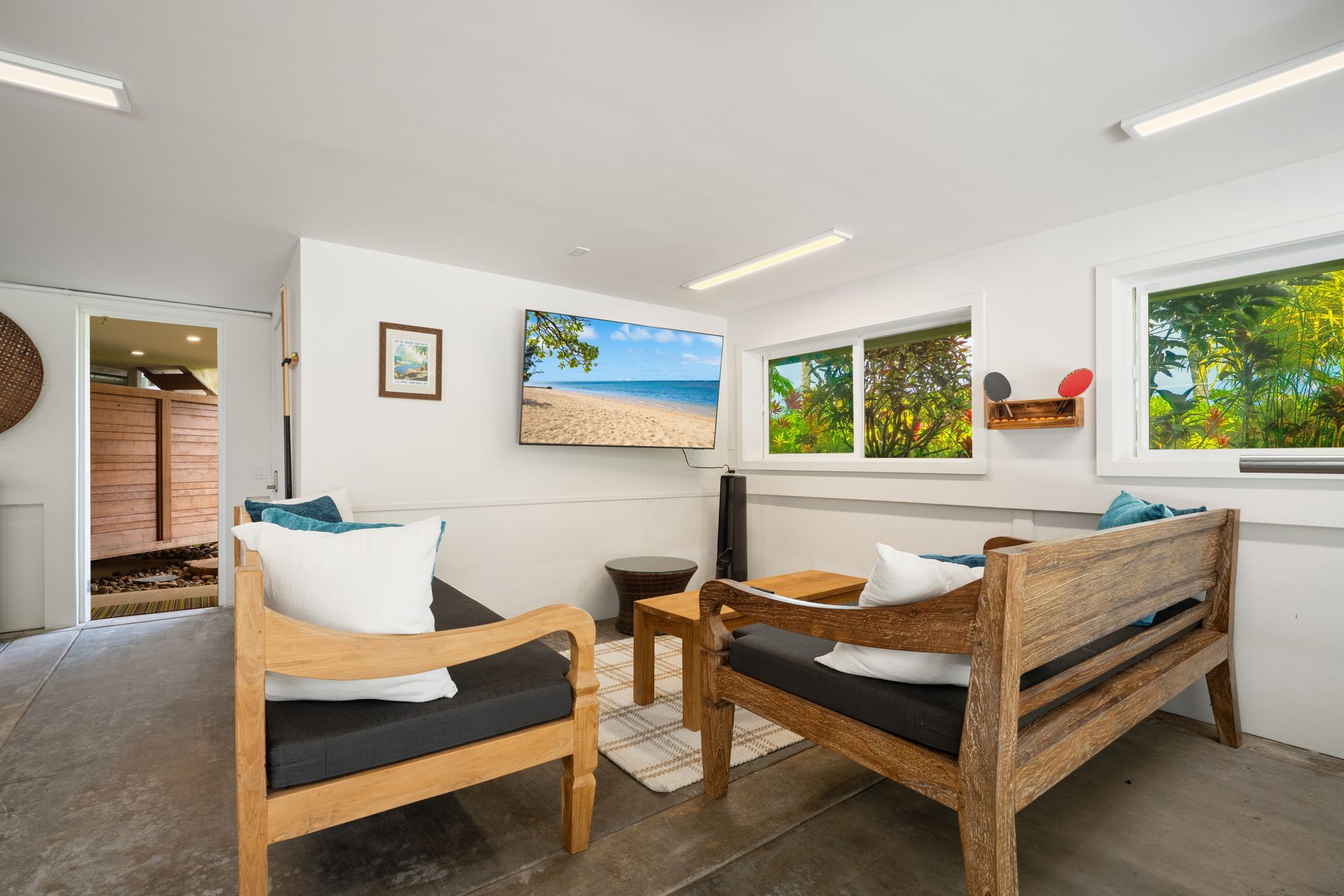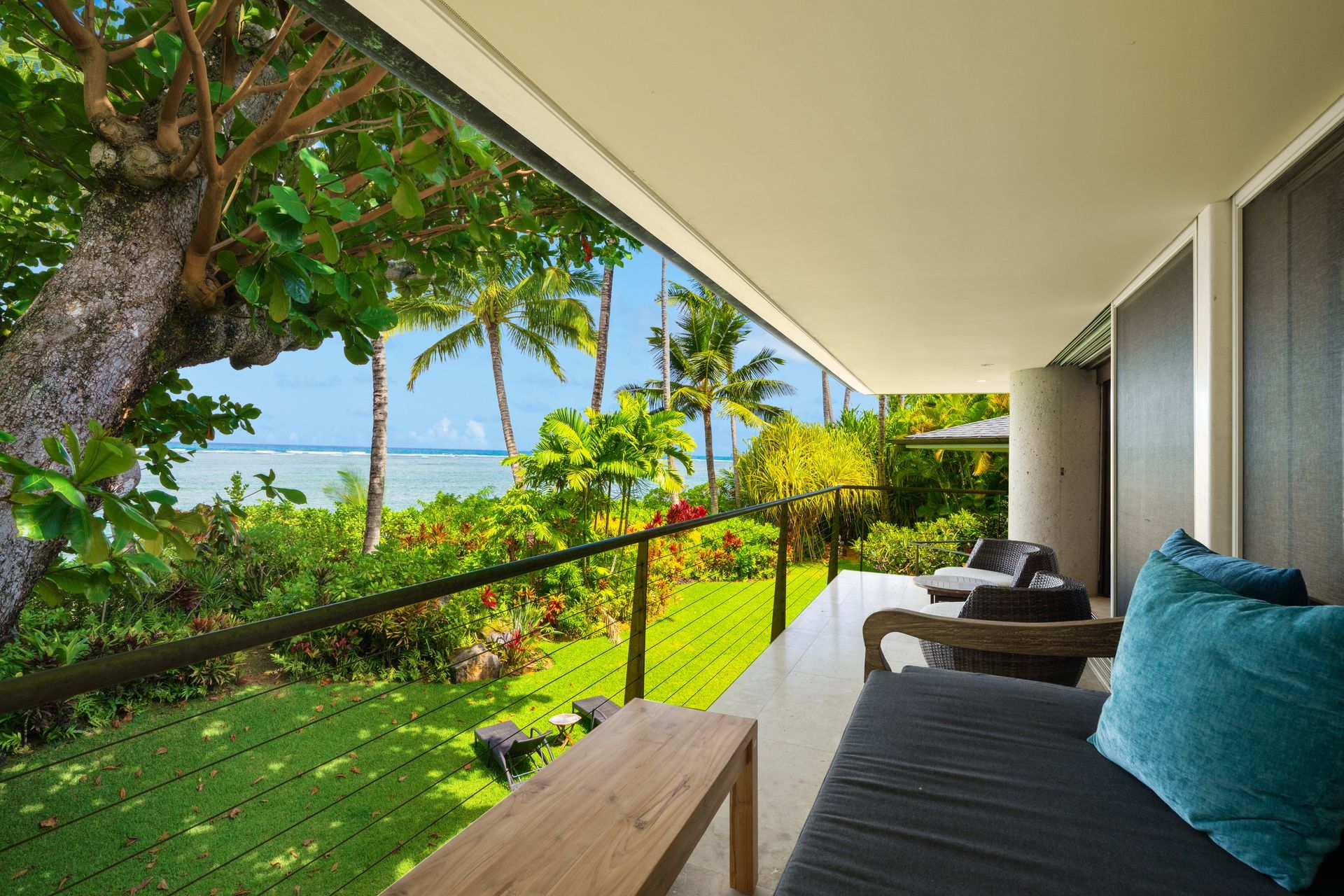 Oceanfront luxury meets Old Hawai‘i charm at Kai Hale, your private beachfront escape on magical Anini Beach. Just steps from the sand, this peaceful retreat features panoramic ocean views, open-air living with floor-to-ceiling glass doors, private lanais, and a gourmet kitchen. Perfect for families or friends, with beach gear included—SUPs, surfboards, and more. Relax, explore, and soak in the beauty of the North Shore. Wake up to the sound of waves and end your day under the stars.